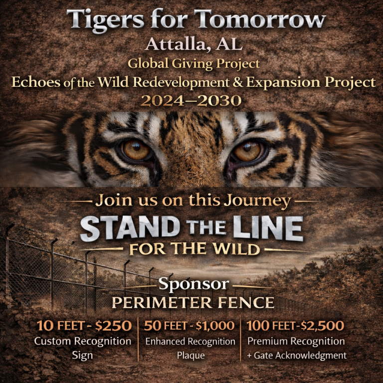 Tigers for Tomorrow e-gift cards are now available! Whether it’s a roaring good time at the preserve or an unforgettable Private Tour with a Tiger Feed, you can now give the gift of adventure and wonder!