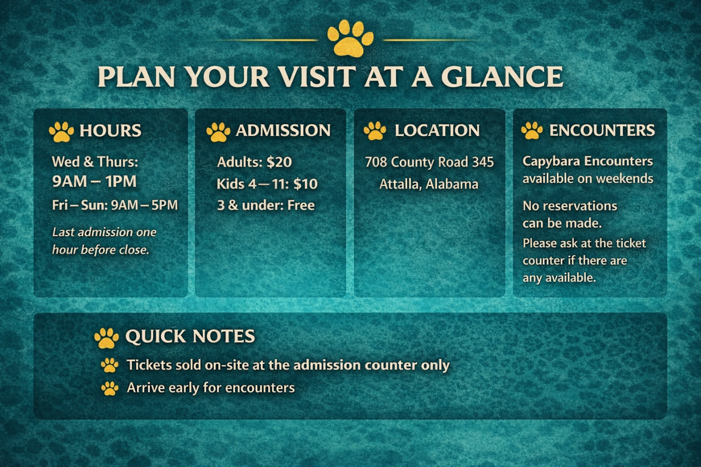 🐾 General Admission for $20/adult or $10/child.